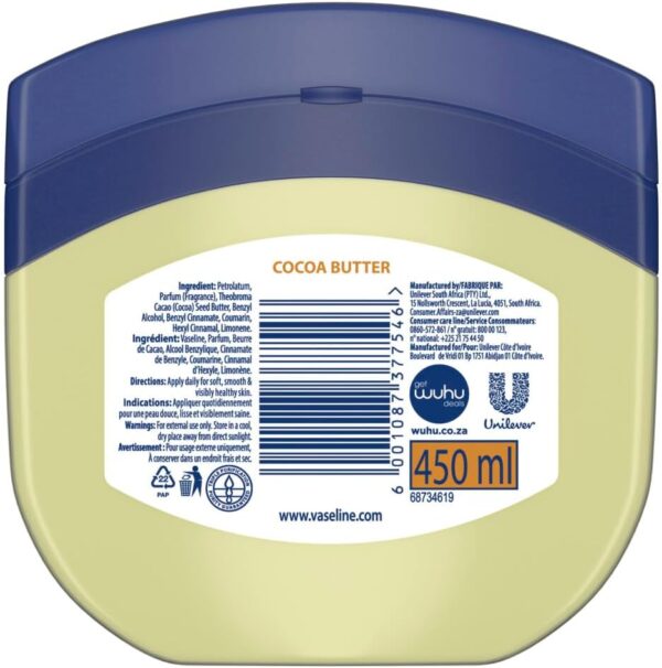 Vaseline® Blue Seal Cocoa Butter Petroleum Jelly keeps your skin deeply moisturised and protects against dry skin.